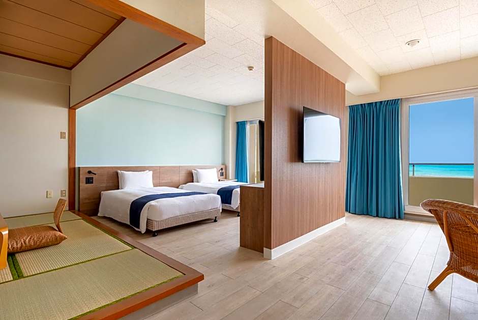 This spacious suite is consisted of of 1 bedroom, a seating area and 1 bathroom with a bath and a shower. The air-conditioned suite offers a flat-screen TV, tatami, a wardrobe, a safe deposit box as well as sea views. The unit offers 2 beds and 2 futons.